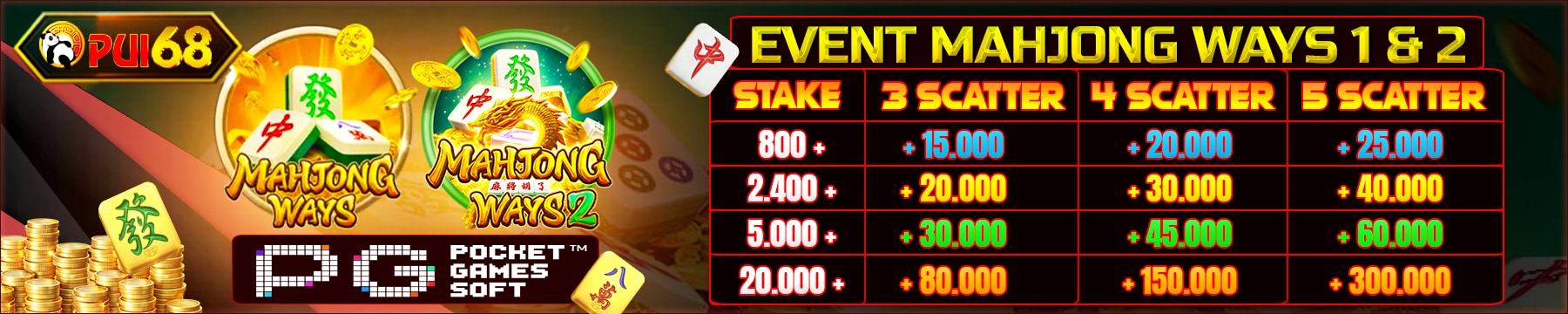 • Sebelum claim wajib untuk share screenshot yang didapat ke Group: FACEBOOK PUI68 dengan Hashtag: #PUI68 #CLAIMSCATTERPUI68 #MAHJONGWAYS #MAHJONGWAYS2